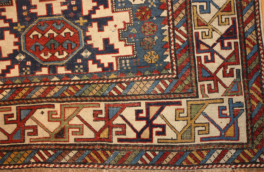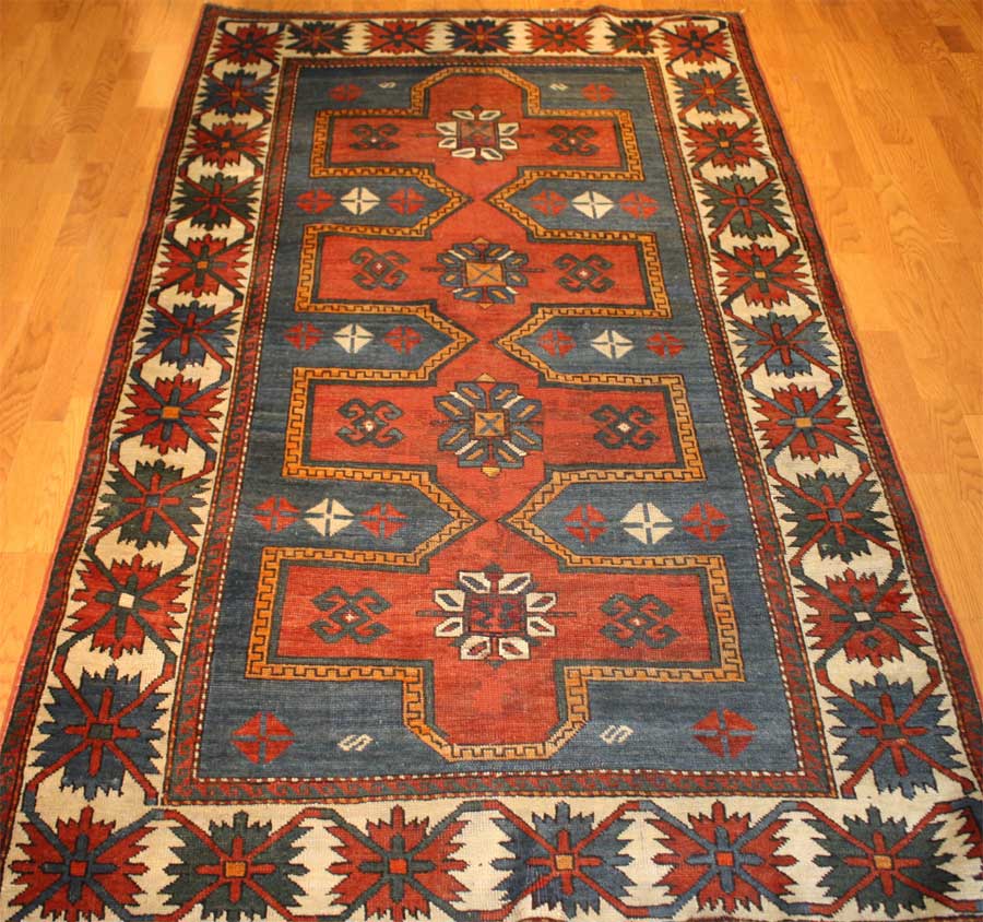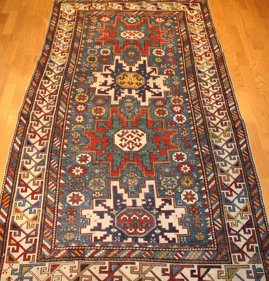 An exceptional Antique Caucasian Shirvan Lesghi Star replete with strong, expressive colors and an intricate structure